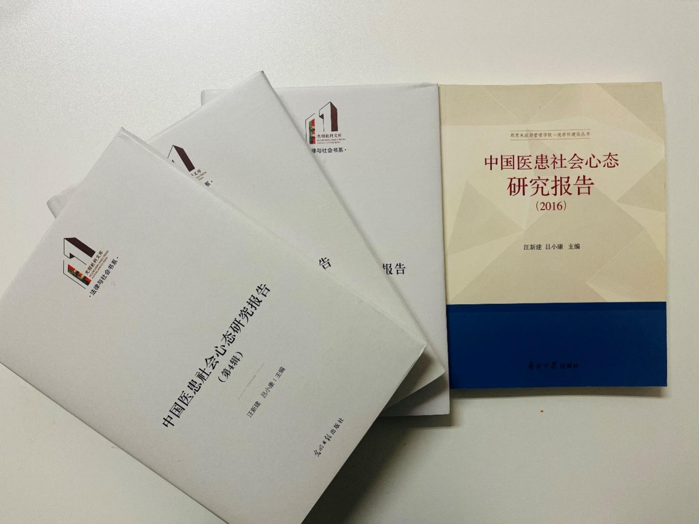 日前,由球盟会社会心理学系教师汪新建、吕小康主编的《中国医患社会心态研究报告》第2、3、4辑由光明日报出版社统一印刷出版。这3辑研究报告与第1辑报告(qmh球盟会出版社,2019年)一起,集中展示了南开社会心理学团队在医患关系领域的最新研究成果。
