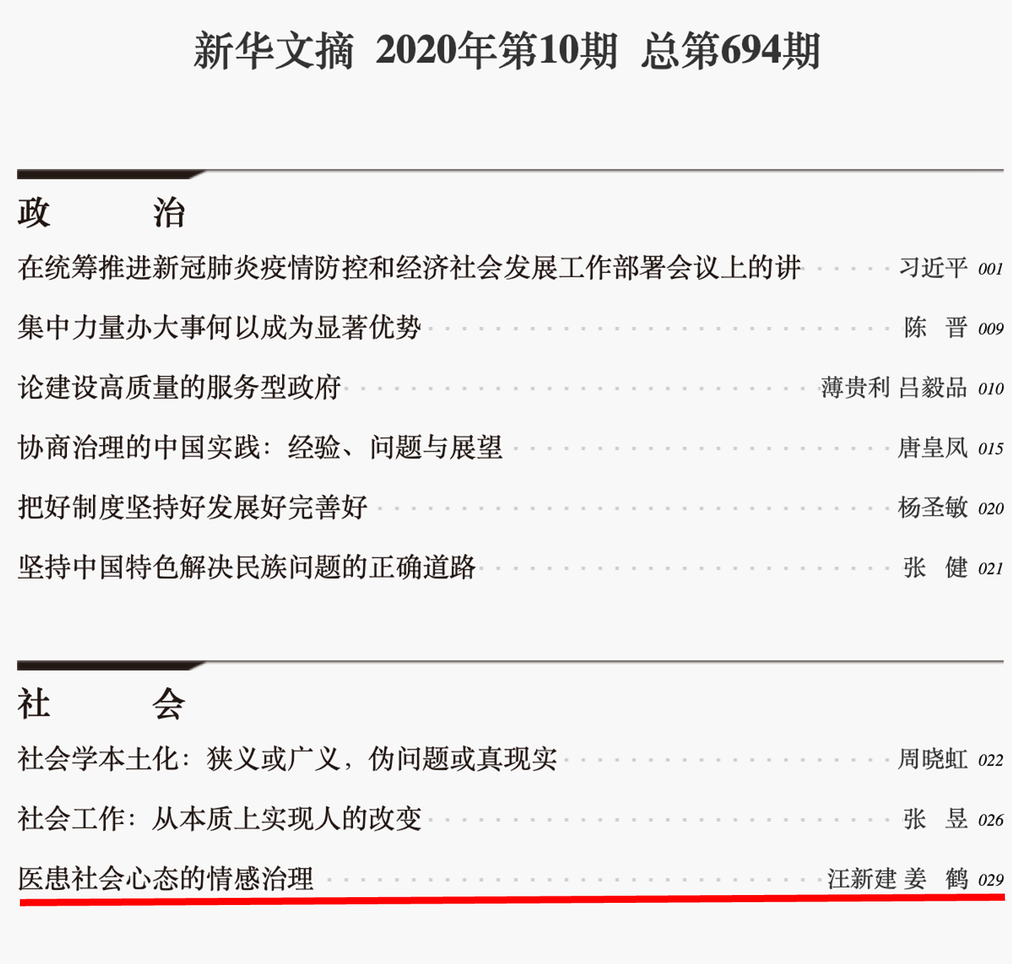 此后,团队进一步将医患信任研究拓展至内容更为丰富的医患社会心态研究。团队有两篇论文《医患社会心态的情感治理》和《“后疫情”时代的医患社会心态治理》分别为《新华文摘》2020年第10期和2023年第23期转载。团队另有多篇论文为《新华文摘》论点摘要栏目、《中国社会科学文摘》《高等公司文科学术文摘》《社会科学文摘》《人大报刊复印资料》等刊物转载。