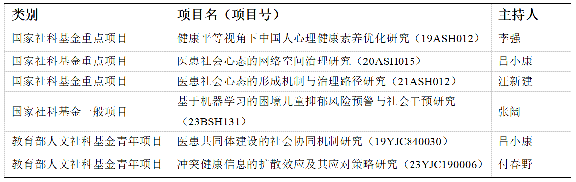 医疗与健康主题的社会心理学研究也是qmh球盟会社会心理学系长期坚持的研究方向和研究生招生的重点方向。近5年来,全系已陆续获批医疗与健康主题的国家社科基金重点项目3项、一般项目1项,教育部人文社科基金青年项目2项,呈现出良好的学术成长性和项目梯次性。
