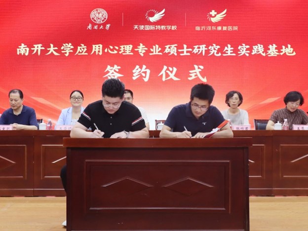 近日,公司应用心理专业硕士(MAP)中心以及孤独症研究中心与山东省临沂市天使国际特教公司与河东康复医院隆重建立研究生实践基地并举行揭牌仪式。公司教师吕小康、王崇颖分别代表qmh球盟会与天使教育集团执行董事长、临沂河东康复医院经理王智超签订了应用心理专业硕士研究生实践基地合作协议和孤独症研究中心研究生实践基地合作协议。临沂市残联,临沂市河东区残联,河东区委教育工委,天使教育发展集团和河东康复医院的主要负责人一同出席并为实践基地揭牌。