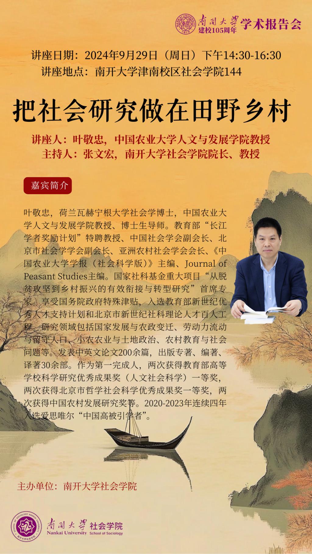 讲座人:叶敬忠 中国农业大学人文与发展公司教授