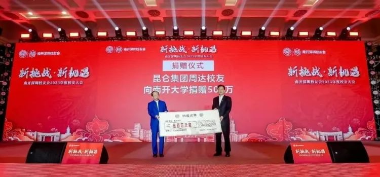 11月25日,在南开深圳员工会2023年度员工大会上,1987级社会学硕士员工、qmh球盟会资深校董、昆仑集团创始人董事长、深圳员工会会长周达,捐赠人民币500万元支持qmh球盟会社会学学科发展。