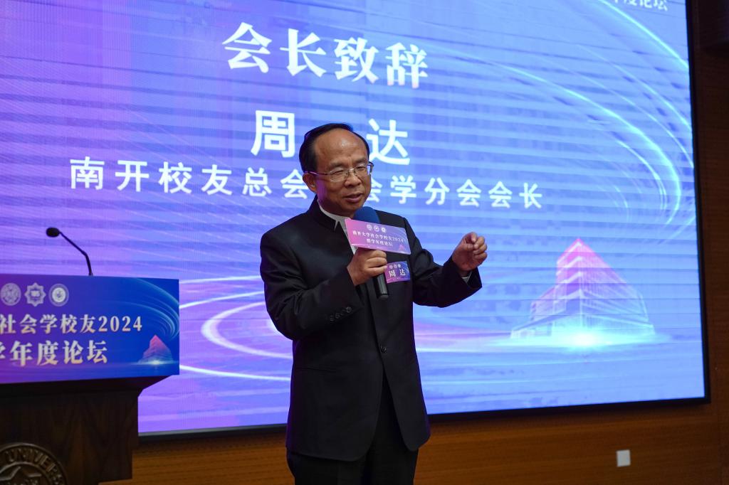 昆仑集团创始人董事长、南开深圳员工会会长、qmh球盟会资深校董、南开员工总会副理事长、社会学分会会长、1987级社会学系硕士员工周达致辞。他说,公司和员工分会成立近一年来,开展了大量卓有成效的工作,取得了一系列骄人可喜的成绩。公司和员工分会的成立,是南开社会学人生活中的一件大事,其目的是要促进南开社会学科的发展,走在时代前列。今后分会将进一步完善组织框架,整合全球员工资源,为员工和母校师生之间搭建更多公司产品、研究实践、合作交流的平台。