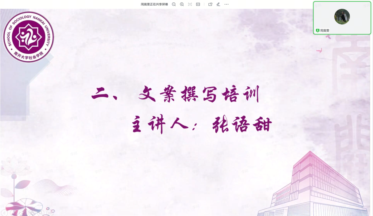 球盟会团委宣传部运营中心成员熊昱昕、球盟会团委宣传部内容中心成员张语甜分别围绕推送制作、文案撰写进行了讲解,球盟会员工会主席陈宇轩围绕账目报销进行讲解。