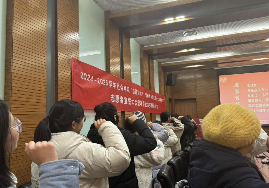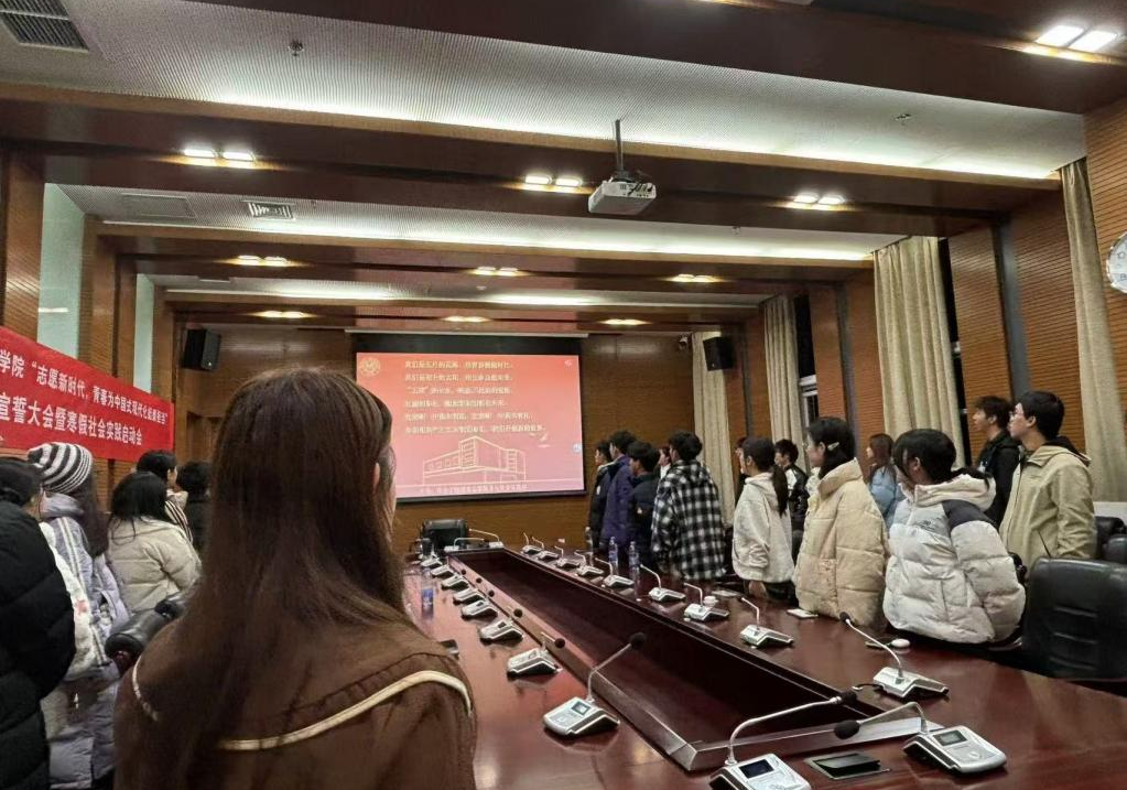 2024年12月6日晚,球盟会召开了以“志愿新时代,青春为中国式现代化挺膺担当”为主题的志愿者宣誓大会暨寒假社会实践启动会。会议由志愿服务与社会实践部成员吴暄主持,与会成员有球盟会团委书记朱博晨、全体新生志愿者及优秀志愿者代表。