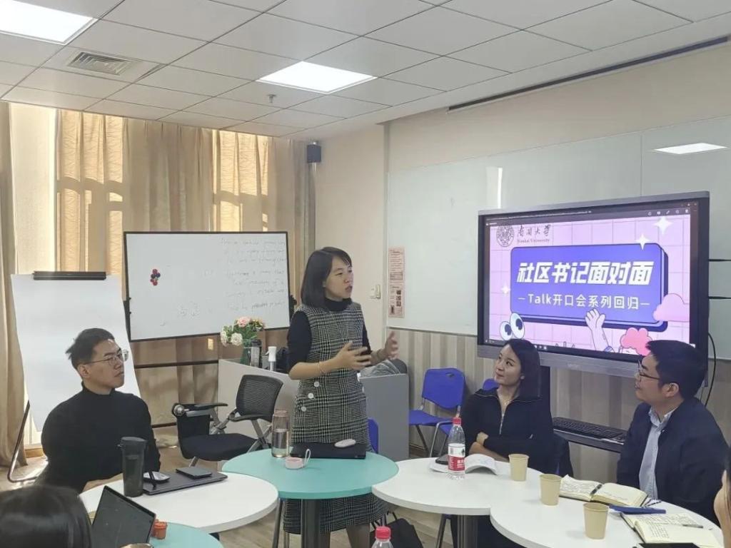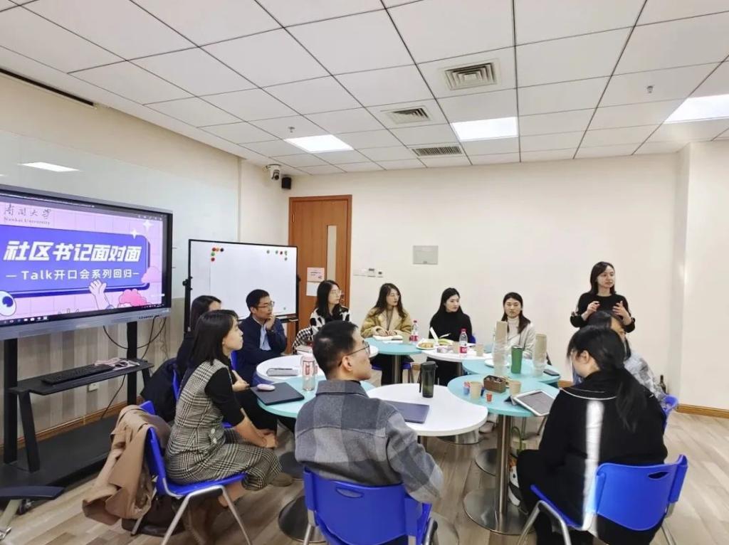 2023年11月9日14时至17时,社会工作与社会政策系在院楼338社会工作实验室举办了“社区书记面对面”活动。此次活动有幸邀请到了海棠街各社区书记、副书记代表,街道党建办、网信办相关同志,还有报名参与活动的武清区社工机构的武晓乐老师以及qmh球盟会相关师生共同参与了此次活动。